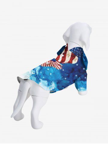 Pet's Patriotic American Flag Eagle Print Shirt - Blue - L