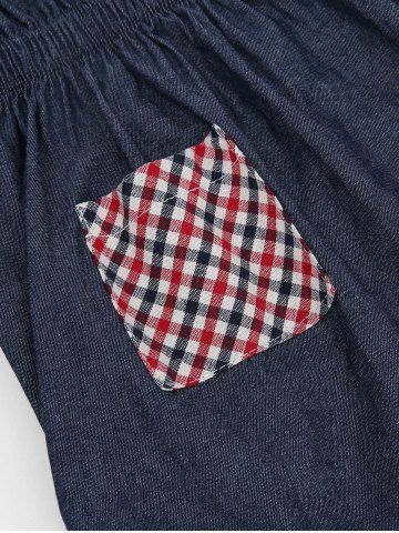 Pet's Plaid Pocket Elastic Trim Denim Tank Dress - Blue - L