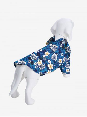 Pet's Tropical Flowers Leaf Tie Dye Print Hawaii Shirt - Blue - S