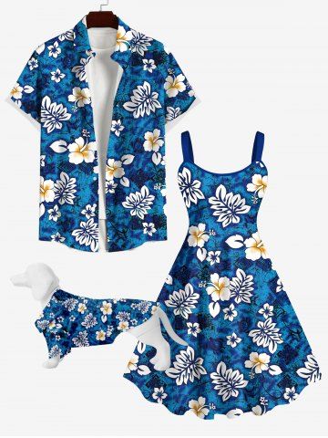 Pet's Tropical Flowers Leaf Tie Dye Print Hawaii Shirt - Blue - M