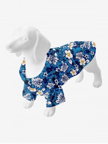 Pet's Tropical Flowers Leaf Tie Dye Print Hawaii Shirt - Blue - 2xl