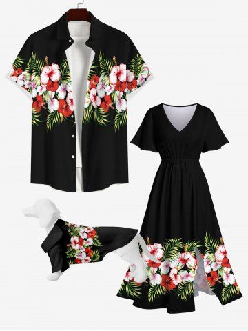 Pet's Tropical Leaf Flowers Print Hawaii Shirt - Black - L