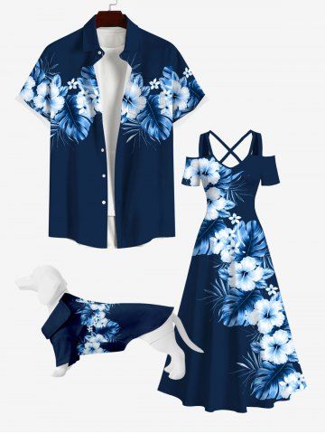 PETS > Pet's Tropical Leaf Hibiscus Flower Print Hawaii Shirt