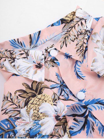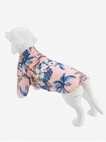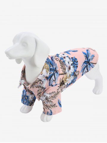 Pet's Turn-down Collar Coconut Tree Pineapple Floral Print Hawaii Button Shirt - Light Pink - Xxl