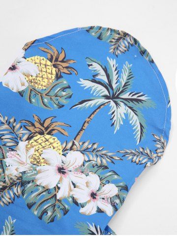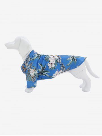 Pet's Turn-down Collar Coconut Tree Pineapple Floral Print Hawaii Button Shirt - Blue - L