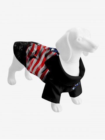 Pet's Turn-down Collar Fire Flame Patriotic American Flag Print Button Shirt - Black - S