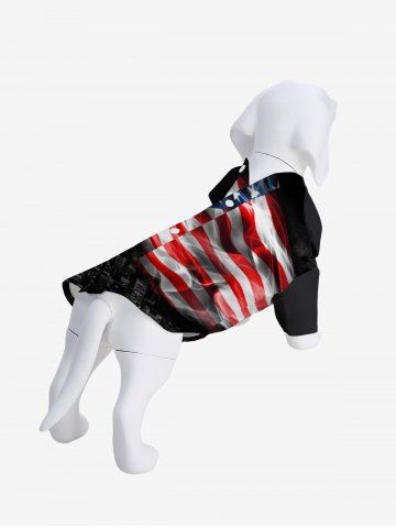 Pet's Turn-down Collar Fire Flame Patriotic American Flag Print Button Shirt - Black - L