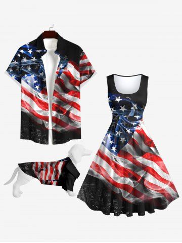 PETS > Pet's Turn-down Collar Fire Flame Patriotic American Flag Print Button Shirt