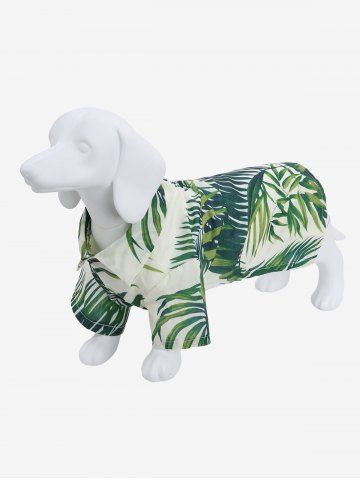 Pet's Turn-down Collar Tropical Leaf Print Hawaii Button Shirt - Green - M