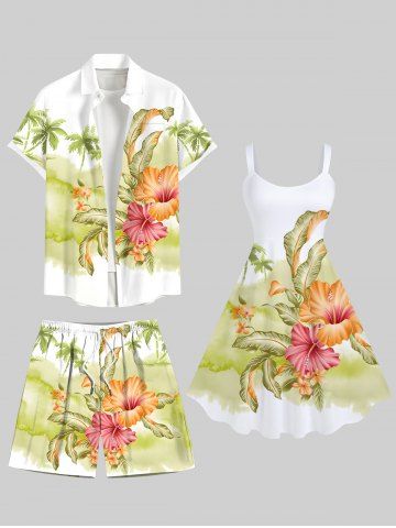 PETS > Plus Size Coconut Tree Tropical Leaf Hibiscus Flowers Print Hawaii Beach Shorts For Men