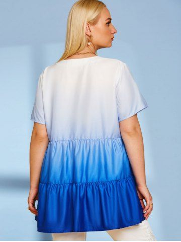Button Front Tiered Ombre Plus Size Top - Blue - 3x