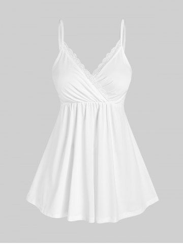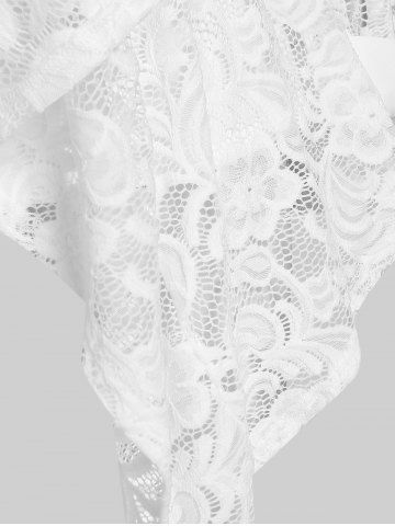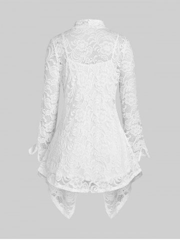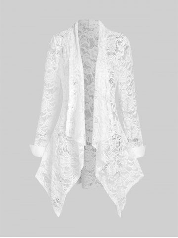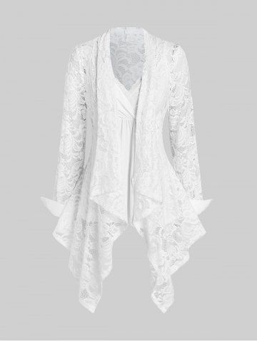 Plus Size Asymmetric Draped Lace Summer Cardigan and Surplice Tank Top Set - White - L | Us 12