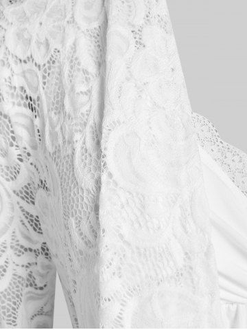 r*****e5Plus Size & Curve Tie Knot Lace Panel TeeColor: WHITE Size: 1X | US 14-16Fits nice but is slightly too big. I did buy big thinking it would run smaller since its from overseas but here’s hoping it shrinks a little in the wash if it doesn’t still 10/10 cute!