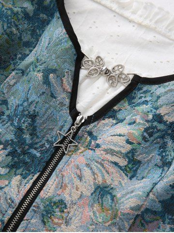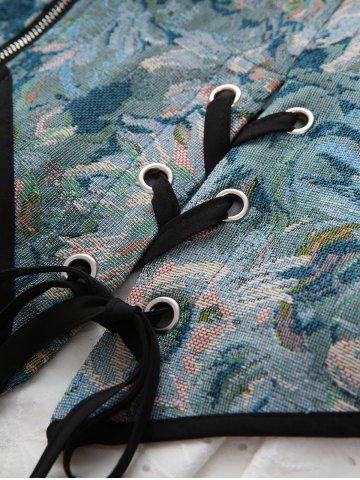 Plus Size Cold Shoulder Lace Up Zipper Buckle Keyhole Flower Knit Jacquard Hollow Out 2 in 1 Blouse - Blue - 2x | Us 18-20
