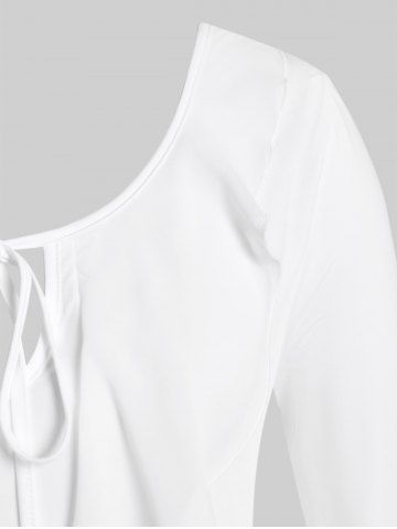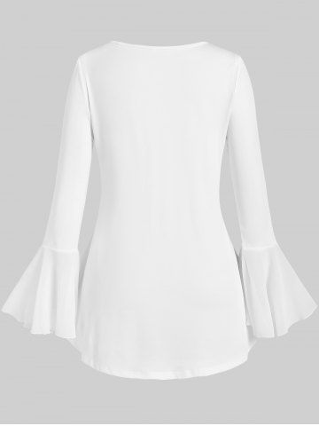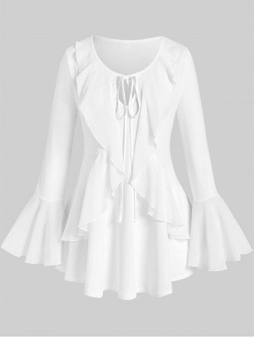 Plus Size Solid Flare Sleeves Flounce Tie Blouse - White - L | Us 12