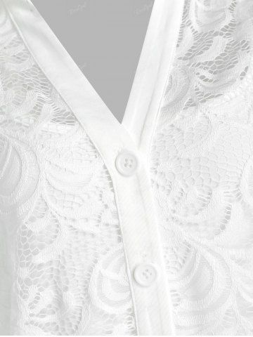 Plus Size Lace Flower Sheer Blouse and Cami Top Set - White - 5x | Us 30-32