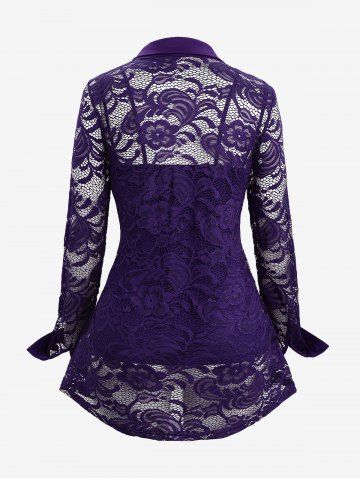 C*****l5Plus Size Lace Flower Sheer Blouse and Cami Top SetColor: BLACK Size: 1X | US 14-16Such a great top! I like that the cami isn't attached so I have options to layer it over several different colours to keep it interesting. Very happy with the quality of the material, it's not a delicate lace and feels really well made.