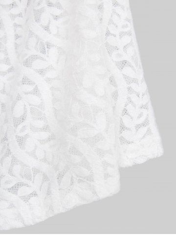 R*****r5Plus Size Notched Collar Mesh Vine Panel Heart Buttons Flare Sleeves Lace Trim Solid BlouseColor: WHITE Size: 3X | US 22-24Very nice shirt, well made. Lots of compliments and it does unbutton. I wore this with a black tank under it and it looked great.