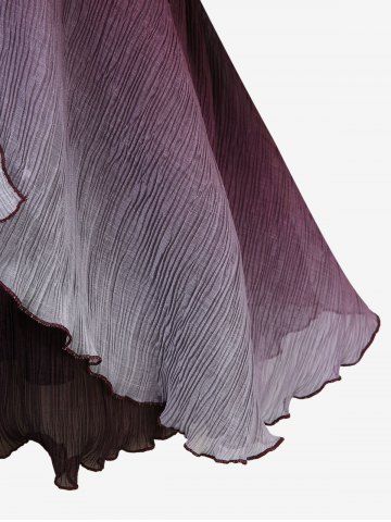 l*****t4Plus Size Ombre Lace-Up Grommets Ruffles Lace Trim Cold Shoulder BlouseColor: PURPLE Size: 3X | US 22-24love the gradient colours of this top, fits nicely, quick delivery