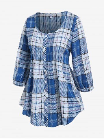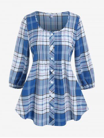 Plus Size Plaid Blouse - Blue - 1x | Us 14-16