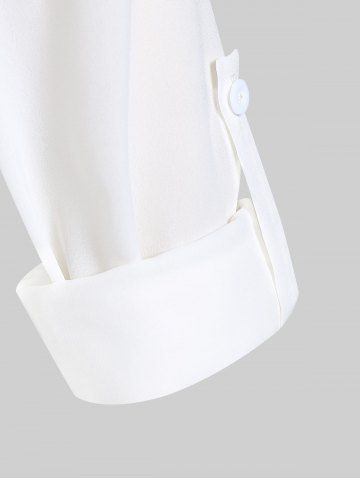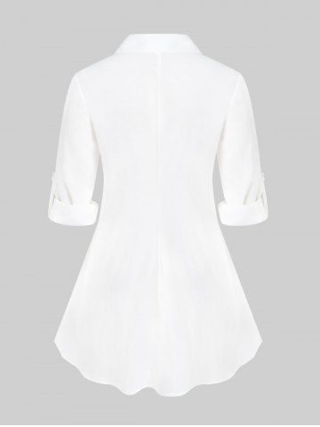 Plus Size Roll Up Sleeve Overlay Button Up Shirt - White - M | Us 10