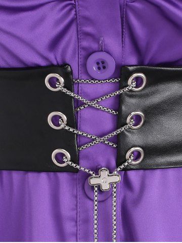 A*****e5Color: PURPLE Size: 2X | US 18-20juste magnifique, je l'adore, la ceinture n'est pas fixée à la chemise donc possibilité de ne pas la mettre