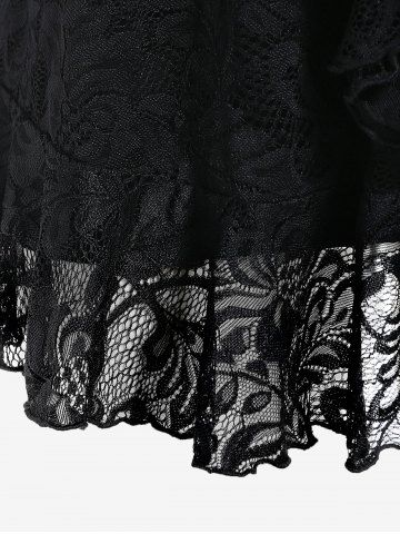 Plus Size Ruffle Sheer Lace Blouse and Camisole Set - Black - 2x | Us 18-20
