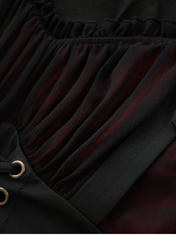 m*****r4Plus Size Ruffles Grommets Lace Up Mesh Asymmetrical Buckle Cold Shoulder BlouseColor: BLACK Size: 4X | US 26-28Lovely top amd true to fit would deffo pair well with a skirt or leggings of a similar style.