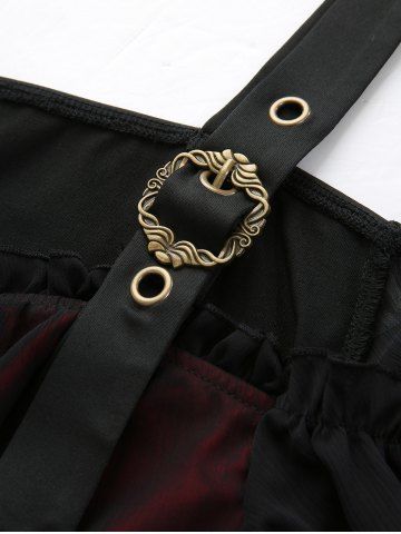 m*****r4Plus Size Ruffles Grommets Lace Up Mesh Asymmetrical Buckle Cold Shoulder BlouseColor: BLACK Size: 4X | US 26-28Lovely top amd true to fit would deffo pair well with a skirt or leggings of a similar style.
