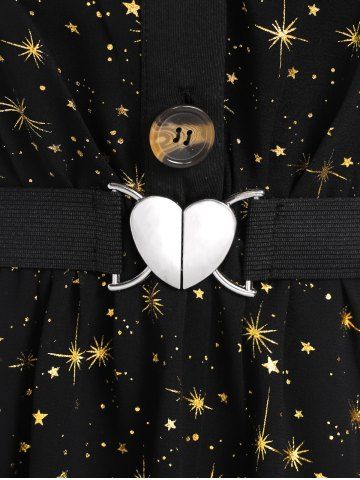 a*****74Plus Size Stars Printed Heart Buckle Buttons Sheer BlouseColor: BLACK Size: L | US 12It looks amazing! It fits pretty well, it's a two piece outfit and really nice. Nice fabric and looks exactly like the picture!