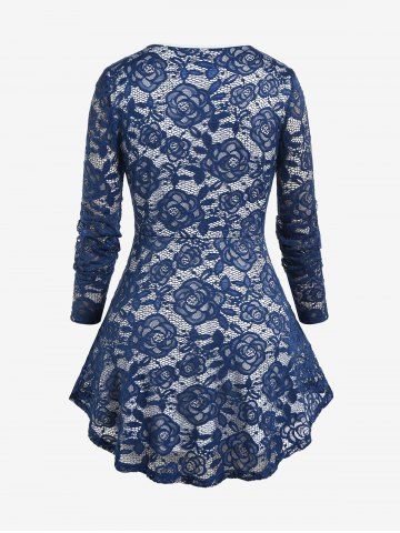 k*****e5Plus Size V Neck Crisscross Rose Lace BlouseColor: DEEP BLUE Size: 2X | US 18-20I really like this blouse/shirt. it is perfectly warm. though I think the white collar could use a tacking at the tip.
