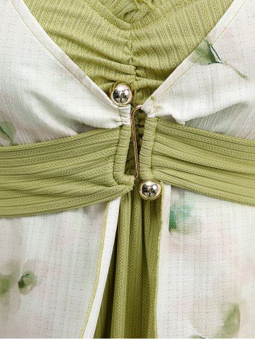 a*****e5Watercolor Flowers Printed Asymmetrical 2 In 1 Blouse and Pintuck Buckle Waist Pocket Wide Leg Pants Plus Size OutfitColor: GREENI love this outfit and fit great.