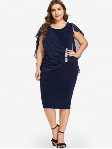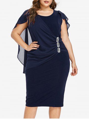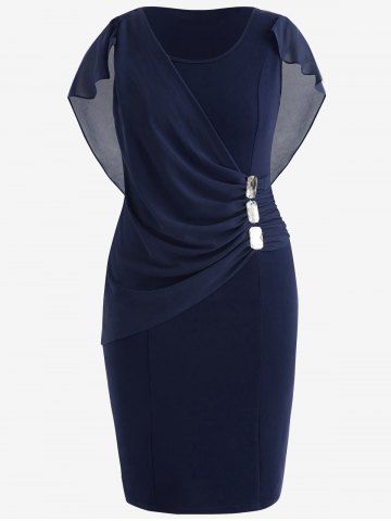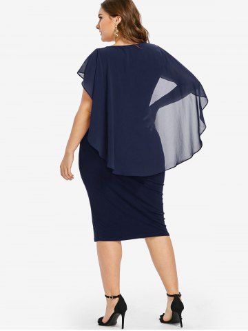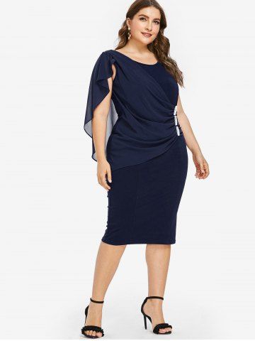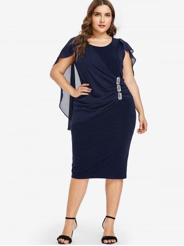 Plus Size Knee Length Ruched Fitted Dress - Deep Blue - L | Us 12