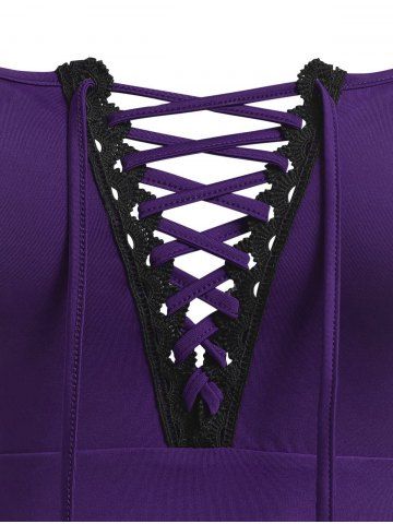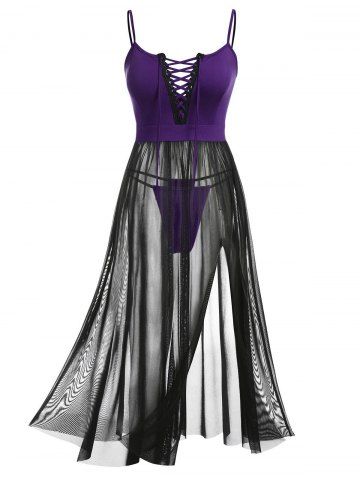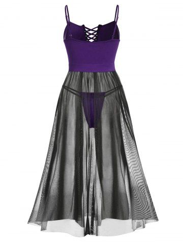 Plus Size Mesh Sheer See Through Lace Up Split Lingerie Set - Concord - 5x | Us 30-32