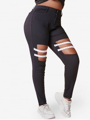 Plus Size Cutout Studded Straps Skinny Jeans - BLACK - 3XL