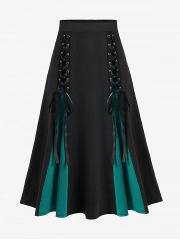 M*****A5Gothic Flare Sleeves Lace Up Two Tone Handkerchief Tee and Colorblock Handkerchief Skirt OutfitColor: MULTIrosgal items are bigger than my usual styles but is nice quality. the ones in pictures are size M. I have decided to only try and buy smalls from this site because they are like mediums, but will push it to medium for options of designs. fits big. for a pregnant 150lb woman in pictures I like to wear this outfit separately!
