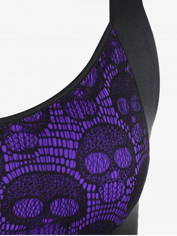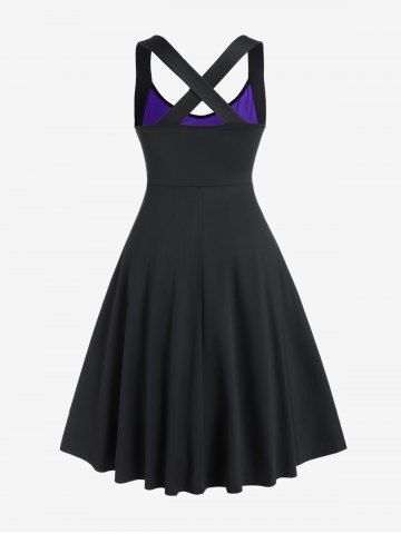 Gothic Crisscross Skull Lace Midi Flare Dress - Purple - 4x | Us 26-28