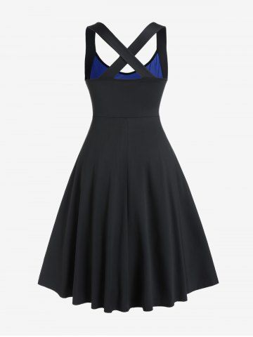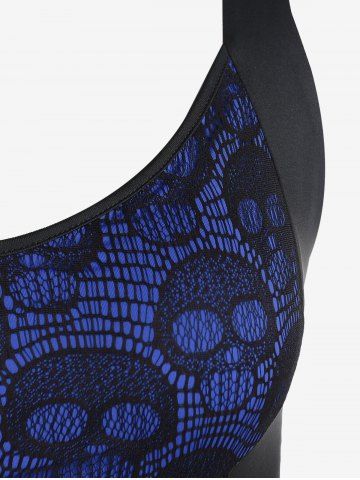 Gothic Crisscross Skull Lace Midi Flare Dress - Blue - 1x | Us 14-16