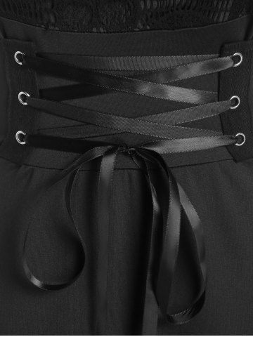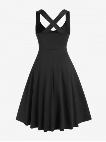 Casual Dresses > Gothic Crisscross Skull Lace Midi Flare Dress