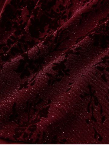 Gothic Plus Size Glitter Floral Flocking Ruched PU Panel Belted Split Layered High Low Asymmetric A Line Tank Dress - Deep Red - 2x | Us 18-20