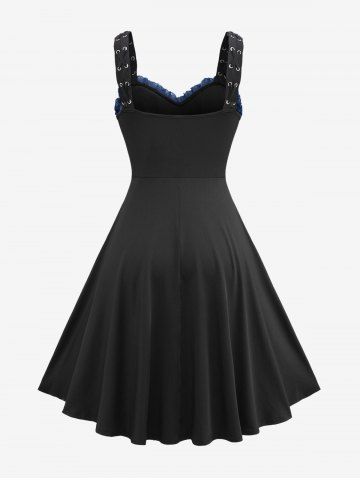 Gothic Plus Size Lace Up Ruffles Cross Tank Dress - Blue - 1x | Us 14-16