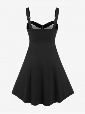 Casual Dresses > Gothic Plus Size Plaid Colorblock Print Lace Up Half Zipper Patchwork Fit and Flare Dress