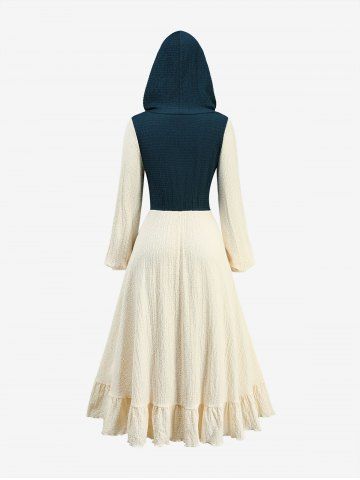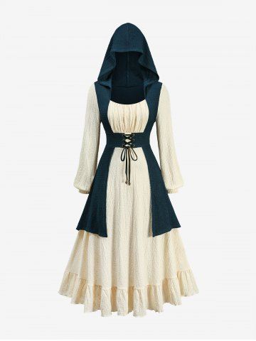 Casual Dresses > Gothic Plus Size Two Tone Textured Lace Up Hooded 2 in 1 Long Sleeves A Line Dress