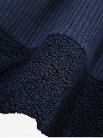 Plus Size Butterfly Buckle Ruffles Ruched Teddy Trim Ribbed Textured Hooded Dress - Deep Blue - 3x | Us 22-24