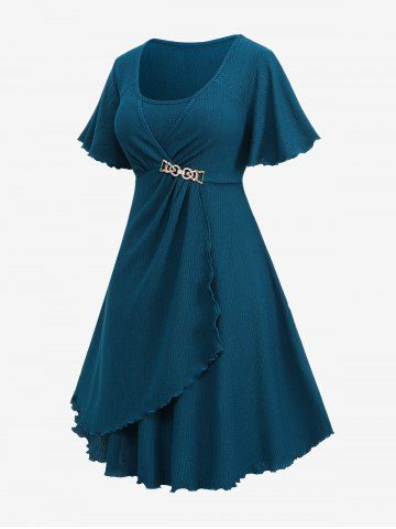 v*****95Plus Size Chain Panel Ruched Layered Lettuce Trim Surpliced DressColor: DEEP BLUE Size: 4X | US 26-28Absolutely love this dress. Fits perfectly and it's great material. The color is absolutely gorgeous and it remains the same after getting washed.