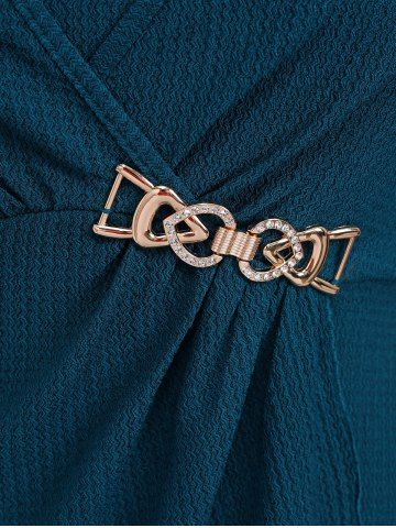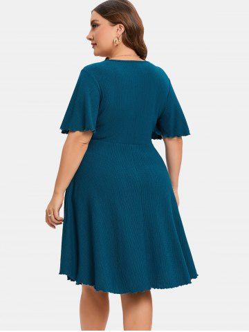 v*****95Plus Size Chain Panel Ruched Layered Lettuce Trim Surpliced DressColor: DEEP BLUE Size: 4X | US 26-28Absolutely love this dress. Fits perfectly and it's great material. The color is absolutely gorgeous and it remains the same after getting washed.