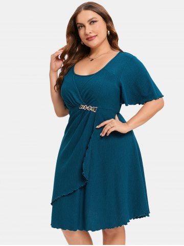 v*****95Plus Size Chain Panel Ruched Layered Lettuce Trim Surpliced DressColor: DEEP BLUE Size: 4X | US 26-28Absolutely love this dress. Fits perfectly and it's great material. The color is absolutely gorgeous and it remains the same after getting washed.