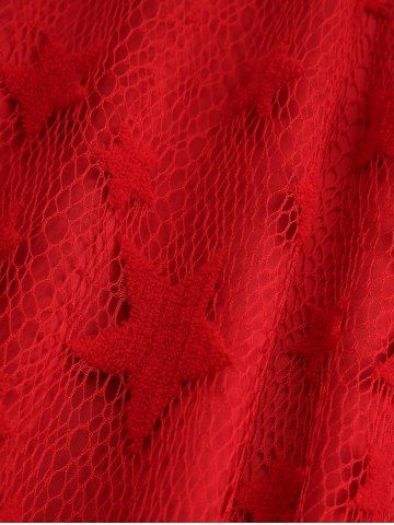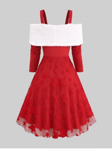 Plus Size Christmas Woolen Ball Star Lace Cinched Cold Shoulder Dress - Red - 4x | Us 26-28