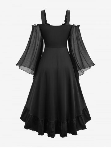 Plus Size Cold Shoulder Hook and Eye Layered Cinched High Low Asymmetric Dress - Black - 4x | Us 26-28