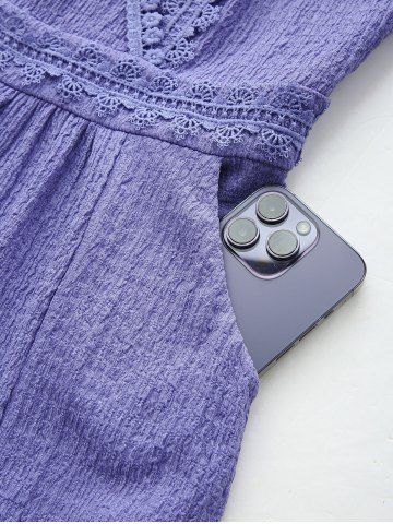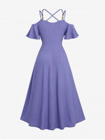 Plus Size Cold Shoulder Lace Trim Textured Pocket Split Crisscross Strappy Solid A Line Dress - Purple - 2x | Us 18-20